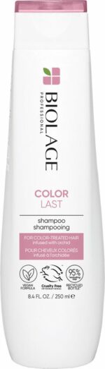 Matrix Biolage Colorlast Shampoo This shampoo nourishes colored hair and helps to maintain the depth, color tone and shine. Cleanses the hair and protects it against external damage. The entire Colorlast line from Matrix is inspired by the vibrant color of an orchid The scent of the orchid can also be found in the products Instructions for use Apply to wet hair, lather and then rinse
