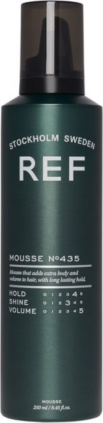 REF Mousse NAdeg435 Hold 4 Shine 3 Volume 5 This mousse provides more body and volume with a lasting effect Can be used for all hair types and gives weightless control to the hair FAPhn for the perfect result Does not stick and the hair does not become heavy The mousse smells fresh with a hint of citrus Use Shake before use Pump a small amount into your hands Apply the mousse to towel-dried hair and then gently knead the mousse into the hair To create extra volume or curls p>