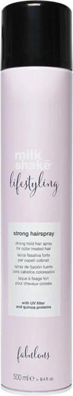 The Milk Shake Strong Hairspray can be used for colored hair. The spray has a strong hold factor so that the hair stays in shape all day long. The spray does not weigh the hair down and retains the natural movement of the hair. hair Bring a natural shine and body to the hair by using this spray Let your styled hair shine all day long