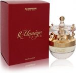 Gift yourself with the luxurious decadence of Al Haramain Manege Rouge a sweet and lightly spiced fragrance for the on trend woman This succulent scent opens with enduring saffron with touches of white jasmine and zesty orange The heart is all sweetness with caramel and cotton candy that softly drift down to a base of soothing amber and dependent oakmoss