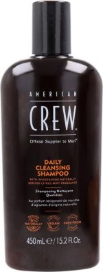 American Crew Daily Cleansing Shampoo, Vegan & Silicone Free (450ml) To Remove Excess Oil & Nourish, Normal & Oily Hair, Formulated For Men