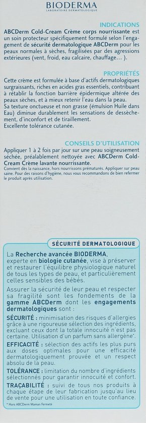 Bioderma ABC Derm Cold Cream CrA me Corps Nourrissante Nourishing body crA me for babies and children Nourishes, soothes and protects This crA me is formulated on the basis of supergreasy dermatological active ingredients rich in essentials< /p>