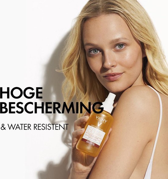 Sun protective water in spray form for face and body With strong UVA and UVB protection and bA tacarotene for a natural tan Provides an optimal tan and is hypoallergenic Shake well before use until a homogeneous substance is created. Use Apply generously and spread evenly with circular movements over the entire body. To maintain protection, reapply regularly
