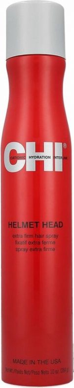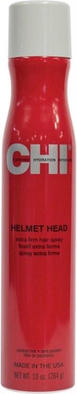 CHI Style Helmet Head Extra Firm Hair Spray An extra strong fast-drying hair spray great for creating voluminous layers in multiple textures Supports a versatility of different styles without added weight No residue build-up and protection against humidity Use Hold the spray at a distance of 25-30cm and spray over damp hair to style. Spray evenly on dry hair and use the CHI thermal straightener or curling irons for different hairstyles. Use