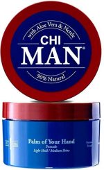 CHI MAN Palm Of Your Hand Pomade 85 gr has been specially developed for men and offers light strengthening to the hair with a natural shine. Show off your best sleek and polished look with this lightly firming, medium-shine pomade. The water-soluble formula is easy to rinse. This pomade leaves no residue and is free of parabens and not tested on animals. Key features * Especially for men. * Provides light reinforcement. * Gives a natural shine. * Easy to rinse with water. * Paraben and animal test free. Instructions for use * Rub the product in the palms of your hands and apply to dry hair. * Style it according to your own wishes. Buy CHI MAN Palm Of Your Hand Pomade at Shop the pomade online and we will ensure that it is delivered to you as quickly as possible.
