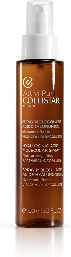 Collistar Pure Actives Hyaluronic Acid Molecular Spray Exclusive fine moisturizing spray that provides the skin with an ultra-thin film layer The skin immediately feels comfortable Hydrates and lifts the skin surface and reduces fine lines and wrinkles