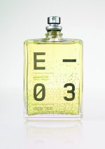 Escentric Molecules Escentric 03 Spray Escentric 03 is a tribute to the more famous side of vetiver its dark somewhat exotic woodiness The fragrance opens with a burst of freshness the ginger root is accompanied by top notes of green peppercorns and Mexican lime The heart of iris is surrounded by the Egyptian jasmine and soft tea notes. Then in the base of the scent the slightly bitter notes of vetiver that are smoothed by the rich amber tones of sandalwood, cedar wood leather and musk. The general impression is spicy but fresh with warm balsam undertones like a traditional chypre It is sensual without sweetness