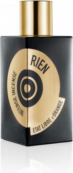 Rich oriental woods fuse with smoky incense powdery florals and spice in Rien Intense Incense The opening is a brisk aldehyde and bergamot effusion spiced with nuances of caraway and bracing black pepper Powdery rose and earthy yet ethereal iris emerge at the heart interwoven with rich accords of leather labdanum and incense