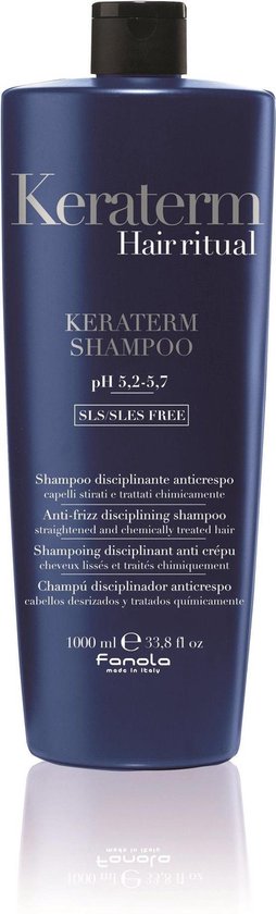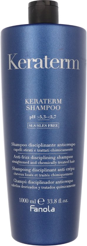 Fanola Keraterm Hair Ritual Keraterm Shampoo This shampoo is suitable for straightened and chemically treated hair Prevents frizzy hair and retains the smooth effect of the hair straightener or chemical treatment The delicate balanced formula moisturizes and protects the hair for a perfect smooth result The SLES and SLS free formula gently cleanses the hair and reduces frizz, leaving the hair soft and supple and easy to comb without weighing the hair Ideal for perfecting and maintaining straight hair obtained by a chemical treatment or a hair straightener Use Apply to damp hair, massage and foam. Rinse excess product with lukewarm water