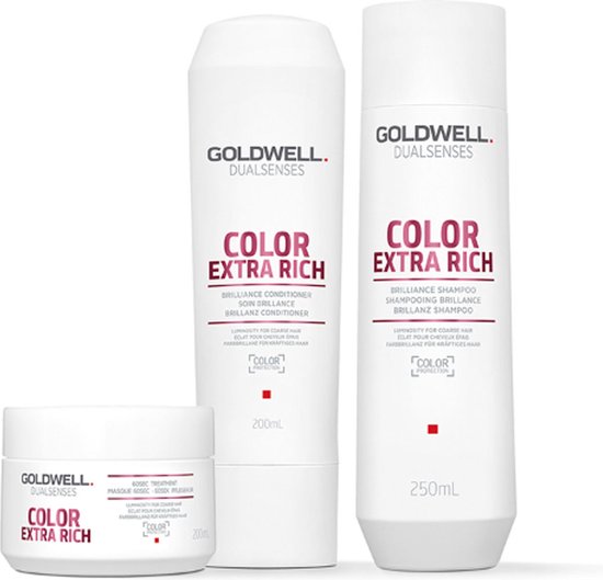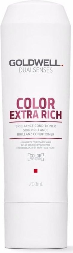 Goldwell New Dualsenses Color Extra Rich Brilliance Conditioner Conditioner for thick to unruly hair enriched with microPROtec complex and Luminescine Instantly detangles and immediately provides color brilliance to colored and uncolored hair Use Apply to damp hair Massage and rinse thoroughly