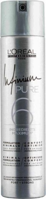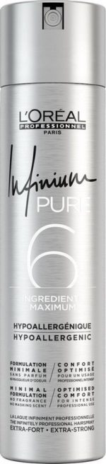 LOrA c al Infinium Pure The Infinitely Professional Hairspray Extra Fort Extra Strong The endless professional hairspray a backstage icon Extra strong new formula without perfume or masking scent neutral odor during application and leaves no odor behind The finest professional spray optimal comfort adapted for intensive professional use immediate hold without stiff effect ultra dry no visible residues optimal shine