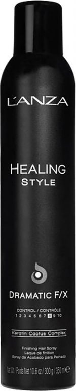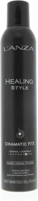 The L’anza Dramatic F/X is a strong and flexible spray. The spray protects the hair against moisture and is not sticky. The spray leaves no residue in the hair and does not weigh the hair down.