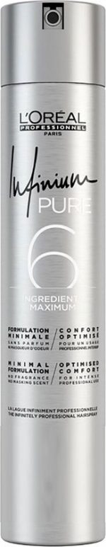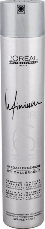 LOrA c al Infinium Pure The Infinitely Professional Hairspray Soft Souple The endless professional hairspray a backstage icon Smooth new formula without perfume or masking scent neutral odor during application and leaves no odor The finest professional spray optimal comfort adapted for intensive professional use immediate hold without stiff effect ultra dry no visible residues optimal shine