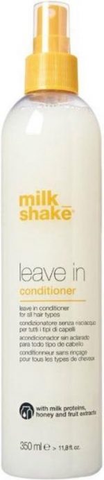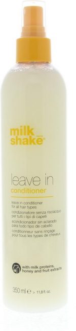 Milk Shake Leave in Treatments Leave in Conditioner Nurturing conditioner spray suitable for all hair types Contains milk proteins and fruit extracts Use Apply to towel-dried hair, distribute over the entire hair length, do not rinse