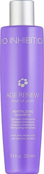 No Inhibition Age Renew Revitalizing Shampoo Perfect gentle cleansing for the hair to maintain the health and beauty of the hair. This shampoo is enriched with luxurious ingredients such as hyaluronic acid melitane and organic rooibos. These respect the hair, give it shine and vitality It provides volume, manageability and radiance. Use Apply to damp hair, lather and rinse. Repeat if necessary. For best results, continue the treatment with the AGE RENEW Revitalizing Mask