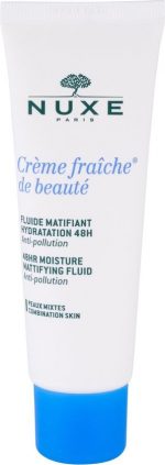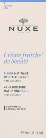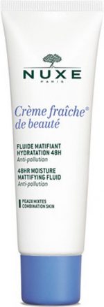 Nuxe CrA me FraA r che de BeautA c Fluide Matifiant Hydration 48h 48hr Moisture Mattifying Fluid A non-greasy liquid emulsion with a unique combination of Vegetable Milk Juices and Algae Extract De crA me provides 48h hydration. In addition, the crA me soothes and protects the skin against air pollution. The skin is fresh all day long and feels velvety soft. Finally, the crA me provides intense nourishment to the skin. Use in the morning and/or evening on the face and apply to neck