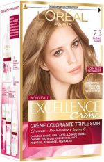 The Excellence 7.3 Advanced Care Triple Color Cream, with Pro-Keratin, Ceramide and Ionene G, protects hair before, during and after coloring with 100% gray coverage.