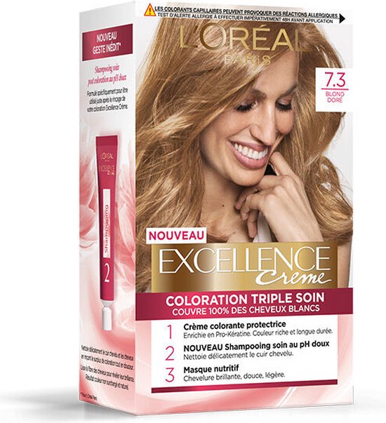 Protected Hair, Richer Color. 100% gray coverage. Rich, radiant color. Triple care: Pro-Keratin, Ceramide and Ioene G. Excellence Creme has an extensive palette of 27 shades for all hair types. Its Triple Care formula protects hair before, during and after coloring.