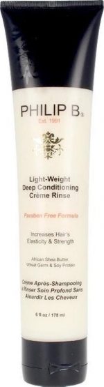 Philip B Conditioner Light Weight Deep Conditioning CrA me Rinse This lightweight rinseable conditioner is a protein recovery for the hair. The African shea butter and essential oils of lavender ylang ylang and geranium hydrate and protect the hair Wheat germ and soy proteins hydrate and improve elasticity without weighing the hair The result is hair that is easy to comb and provides more shine and resilience Suitable for all hair types and also free of phthalates Use Apply the conditioner on the hair and not on the scalp First massage the conditioner and comb the hair, let it work for 2-3 minutes and then rinse
