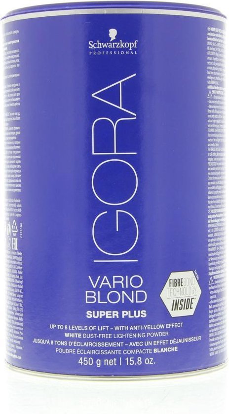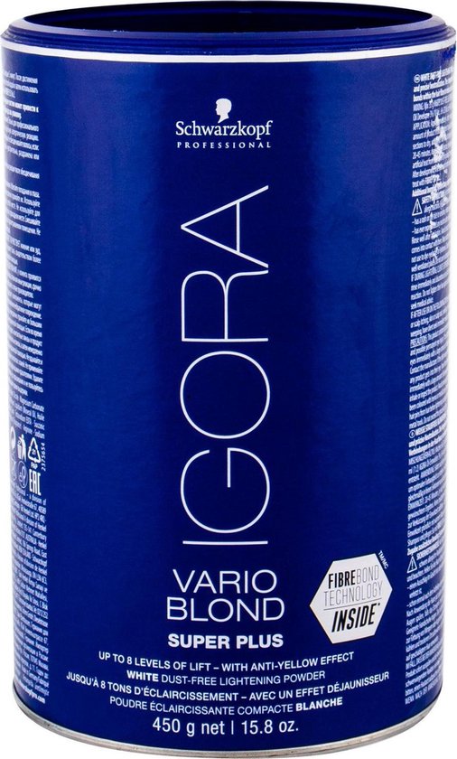 Vario Blond Super Plus White Dust Free Lightening Powder Lighten the hair up to 8 shades with the white dust-free lightening powder from Schwarzkopf. The lightening powder has an integrated Fiber Bond Technology to create hair bridges in the hair fibers. to strengthen and drastically reduce hair breakage