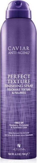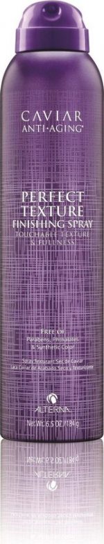 Alterna Caviar Anti Aging Styling Perfect Texture Spray This versatile perfect texture spray gives textural volume and resilience to all hair types. The hair is not sticky, it is easy to comb and soft. The spray also ensures that the vibrancy of the color is maintained Use Shake well Spray on the hair from a distance of 15 to 20 cm style the hair as desired