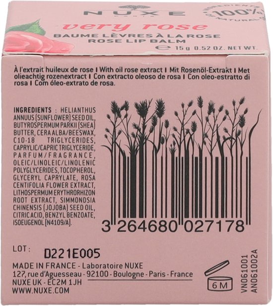 Formulated and manufactured in France.-Nuxe Very Rose Lip Balm Lip Balm 15 gr