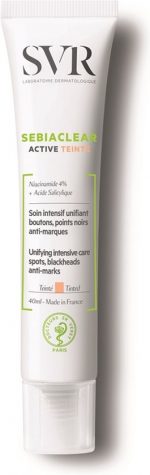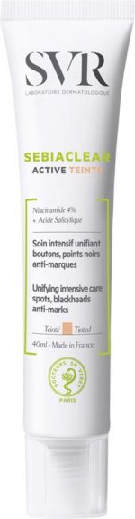 SVR Sebiaclear Active Teinte This tinted day cream is suitable for all skin tones, universal tint and has a fresh scent. The cream ensures that the skin gets an even tone and corrects imperfections such as scars caused by acne and acne. blackheads The crA me has a mattifying effect for up to 8 hours and ensures that the poriA